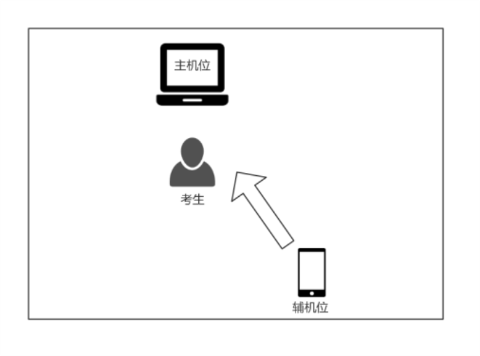 主机位电脑摄像头对准考生本人,辅机位设备摄像头从考生后方成45°拍摄。要保证考生考试屏幕能清晰地被监考员看到。双机位均需确保摄像头视角能看到考生考试的桌面和双手。