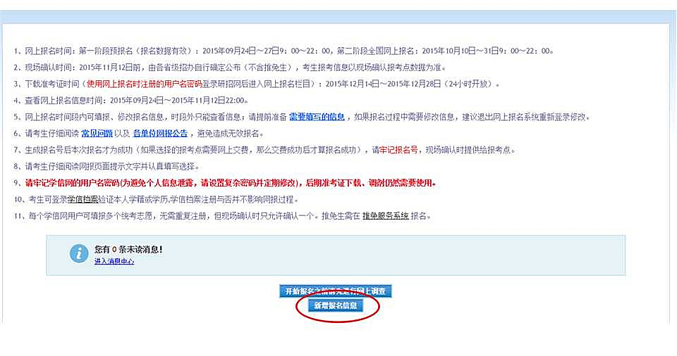 Ø 网上报名时间:10月10日-31日9:00-22:00,网址:中国研究生招生信息网(公网网址http://yz.chsi.com.cn,教育网址http://yz.chsi.cn);