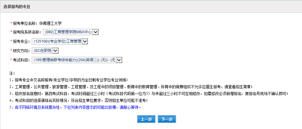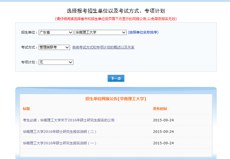 步骤 6: 选择报考单位,考试方式为管理类联考;