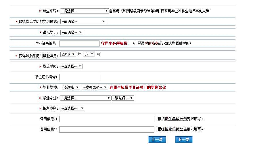 报考类别选择:报考MBA/MPAcc脱产班选择非定向就业,报考MBA/MPAcc在职班选择定向就业,定向单位信息填写目前工作单位信息。