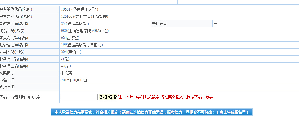 报考点选择:报考MBA的考生必须选择华南理工大学报考点。