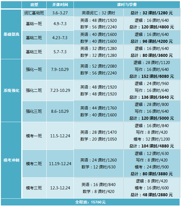 针对基础较弱,想报读名校的学员,全程班大班授课+小班课外辅导+个性化备考服务。100%保证通过,不过免费重读到考上为止。