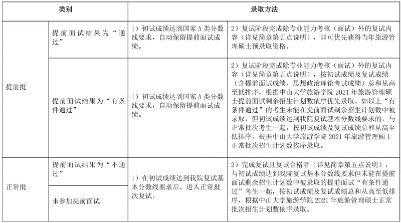 2.符合报考条件的考生可申请参加提前批面试,该成绩仅招生当年有效,详情请参阅提前面试安排《中山大学旅游学院2021年旅游管理硕士(MTA)提前面试安排》。