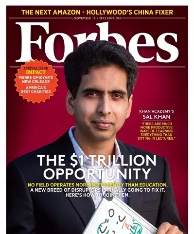 2012年,可汗成功登上《福布斯》杂志封面。《福布斯》撰文称这是一个一万亿美元的商业机会,而当今市值最高的公司是苹果公司,也不过才7000亿美元。