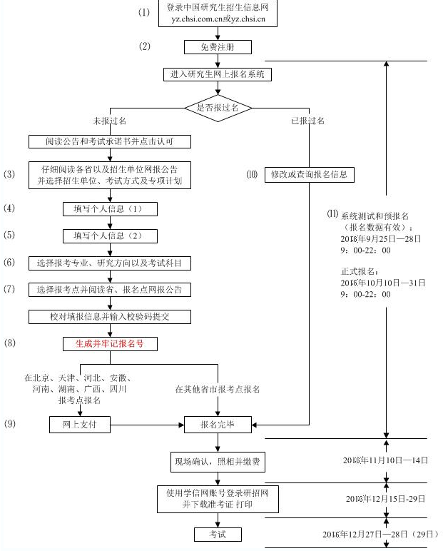 1.网上报名日期:2016年10月10日—31日每天9:00-22:00(逾期不再补报,也不得再修改报名信息)。