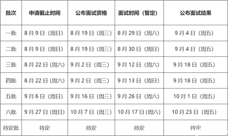 ②每位考生同一自然年仅可申请一个批次提前面试,重复申请无效;
