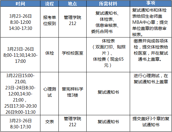 2.流程:这部分考生不需要再参加复试的面试,但需要参加复试的体检和心理测试。若未提交完整面试材料(详看上面第5条),请在复试前以邮件方式发送到以下邮箱:ourjnumba@126.com,标题注明“姓名+补交材料内容”,并附上扫描件附件。