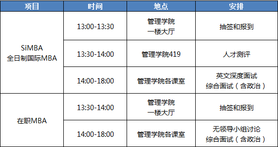 3.通过SiMBA提前面试的考生需要加复试综合面试。